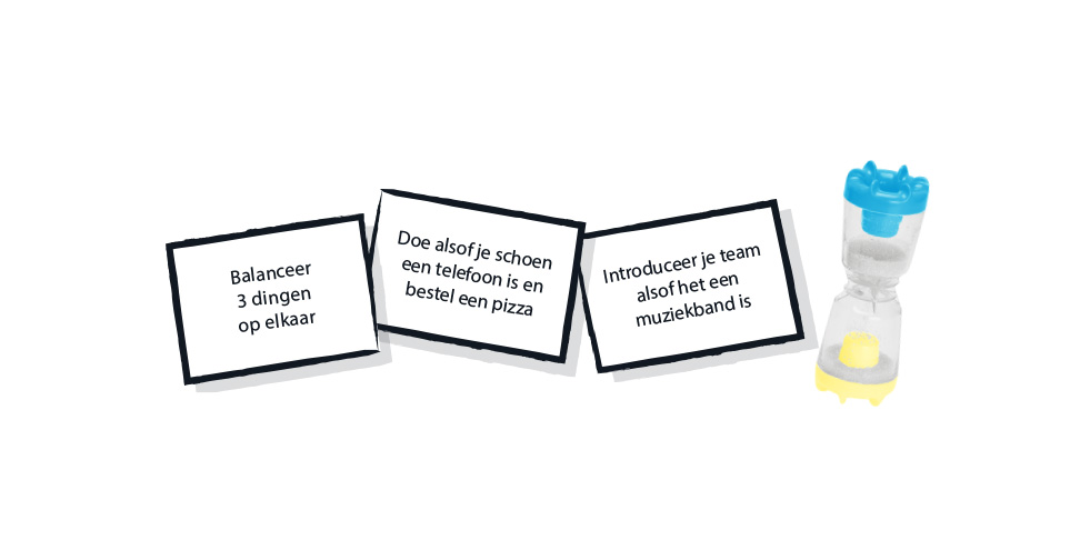 “Sta op en doe de YMCA. Stel jezelf netjes voor zonder je mond dicht te doen. Noem drie landen die beginnen met de letter B. Gebruik je eigen sok als handpop. Noem alle dingen op die je vandaag hebt gegeten”.