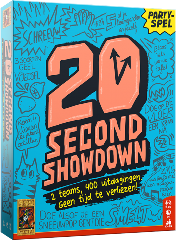 20 Second Showdown is een vliegensvlug spel voor 5-20 spelers. Eén speler is de scheidsrechter. De anderen verdelen zich over twee teams, gaan tegenover elkaar zitten en zetten zich schrap.