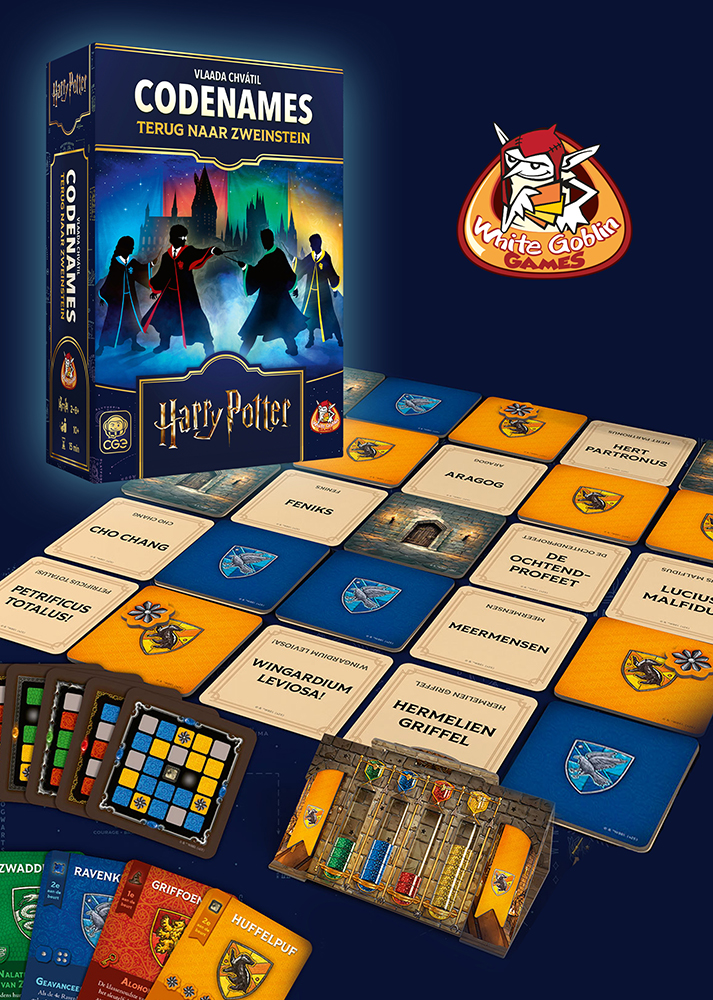 Speciaal voor Harry Potter-fans is dit het magische Codenames: terug naar Zweinstein. Deze Harry Potter Codenames biedt een compleet nieuwe Codenames-ervaring die is geïnspireerd op je favoriete tovenaarswereld. Maak teams en speel je favoriete partyspel als je favoriete Zweinstein-afdeling, waarbij elke afdeling een speciale eigenschap heeft die bij de afdeling past.