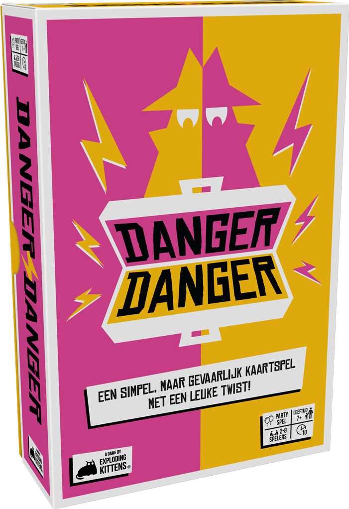 Danger Danger is een één-minuut kaartspel met een duivelse wending die je niet ziet aankomen. Spelers trekken en spelen kaarten zo snel als ze kunnen gedurende 60 seconden. Elke kaart is een aantal punten waard, en het team met de meeste punten aan het einde van het spel wint.