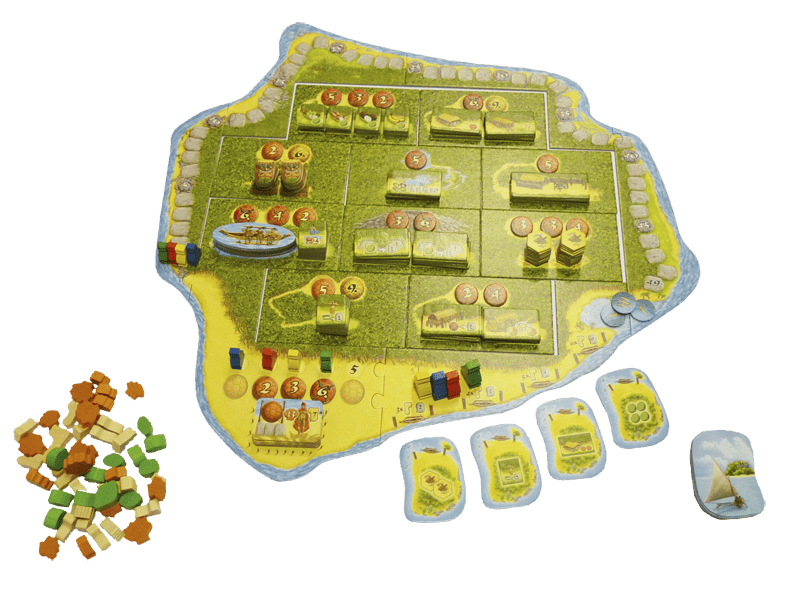 Je krijgt een haakvormig tableau waarin je maximaal 5 dorpen kunt bouwen. Verder krijg je schelpen en voeten om acties mee te kunnen betalen. Met voeten kun je naar een locatie op het speelbord lopen. Daar moet je dan een tegel of een fiche kopen, dat je direct in of op je tableau bouwt. Zo zijn er hutten die extra schelpen of munten opleveren. Met schepen kun je vissen of naar een eiland varen en de voordelen ervan genieten. Hula-danseressen leveren extra punten op voor het dorp waar ze dansen. Vruchten zorgen voor extra betaalmiddelen, die als "joker" kunnen worden gebruikt. Godenfiches hebben speciale eigenschappen. Verder moet je tiki's verzamelen om ervoor te zorgen dat je dorpen aan het einde van het spel ook daadwerkelijk worden geteld.