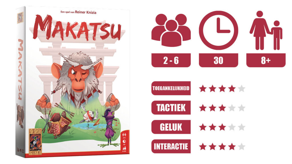 Het spel werkt ook goed voor spelers die al wat ervaring hebben met kaartspellen, maar zeker geen zware kost zoeken. Door de eenvoudige regels kan vrijwel iedereen snel meedoen, maar de echte lol zit in het aanvoelen van de andere spelers. Speel je met mensen die daar ook plezier in hebben, dan komt Makatsu het best tot zijn recht.
