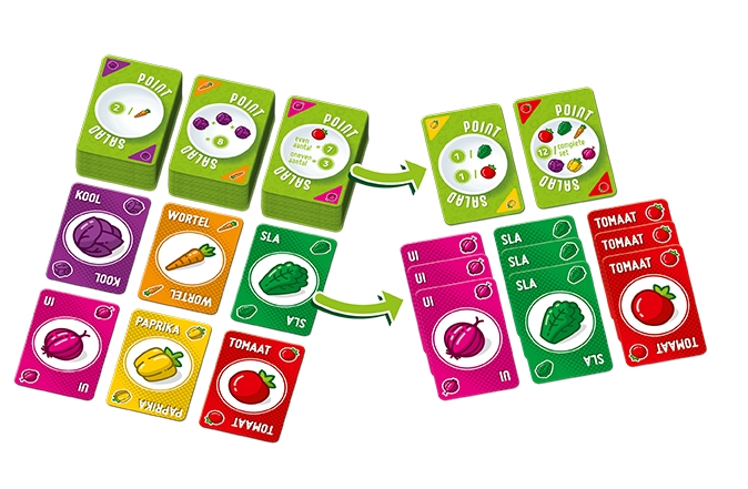 Bij Point Salad zul je kaarten moeten kiezen en uitspelen. Spelers proberen tijdens het spel hun salade aan te vullen uit de groentemarkt of puntenkaarten te verzamelen voor een volle salade. Door een juiste combinatie aan kaarten scoor je punten en stel je een mooie salade samen. De speler met de meeste punten heeft de beste salade en wint het spel.