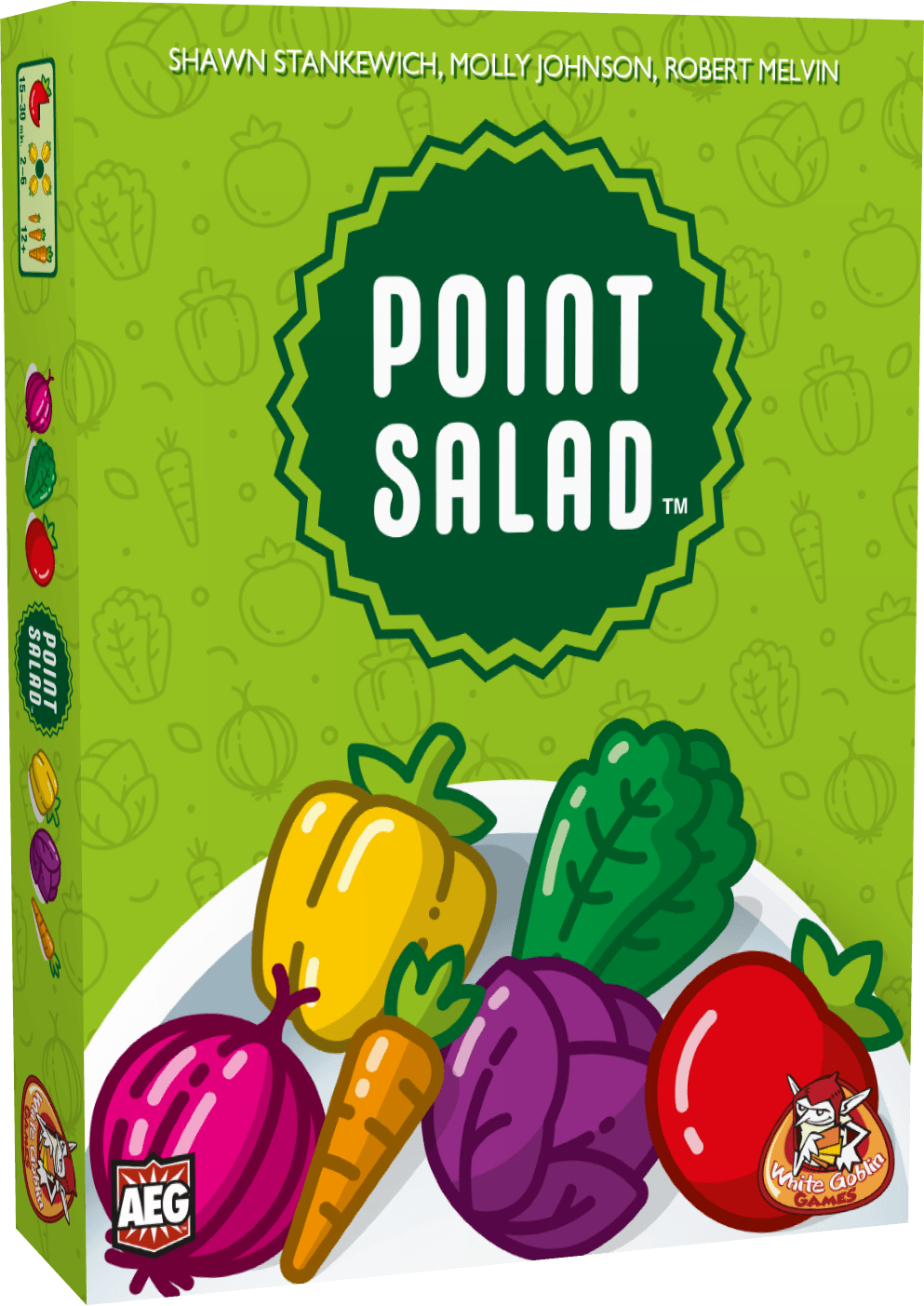 In Point Salad creëer je een volle salade met de groente- en puntenkaarten uit de markt. Weet jij de beste combinaties te maken en zo de meeste punten te verdienen? Point Salad is een leuk en snel kaartspel voor de hele familie. Met unieke puntenkaarten blijft elk spel verrassend en uitdagend.