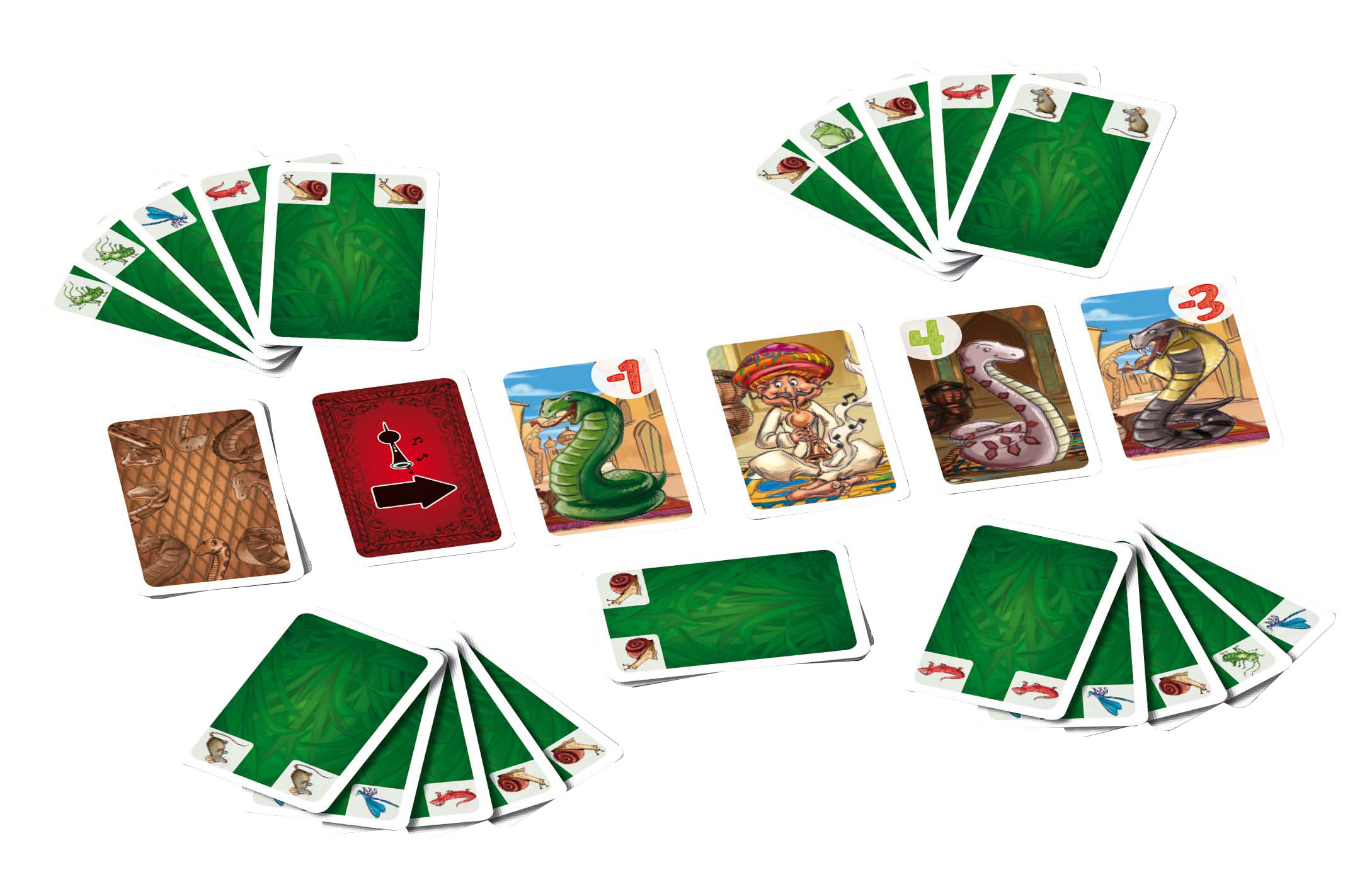 In dit kaartspel probeer je de meest waardevolle slangen te vangen en eventueel 1 of meer slangenbezweerders te verzamelen. Slangenbezweerders kunnen aan het einde van het spel van de minpunten van slangen pluspunten maken, maar heb je geen slangen met minpunten, dan worden van 1 slang de pluspunten juist minpunten!