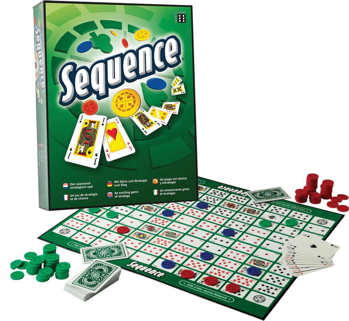 De klassieke versie van Sequence bevat een spelbord waar alle speelkaarten tweemaal op zijn afgedrukt. In de hand hebben de spelers speciale sequencekaarten. Leg in elke beurt een kaart uit je hand voor je neer en tevens een fiche op het bijbehorende vakje op het speelbord. Pas op voor de boeren, sommigen zijn wild en anderen zijn echte schurken! Wie als eerste 2 Sequences (5 fiches op een rij) neerlegt, wint! Sequence Classic is een strategisch bordspel voor 2-12 personen vanaf 7 jaar.